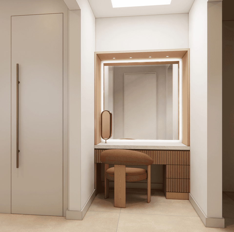 Originally defined in 2023 through a façade renovation, the project evolved in 2025 into a complete architectural and interior design concept, inspired by Japandi aesthetics and expressed through warm wood tones, natural materials, and minimal forms.